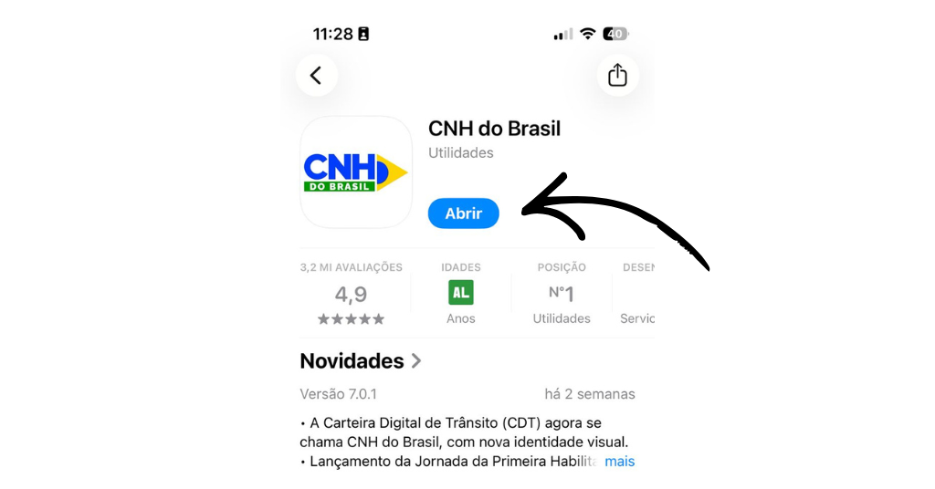 Se você já usava o aplicativo antigo da Carteira Digital de Trânsito (CDT), é necessário atualizá-lo, pois o CNH do Brasil é a versão atualizada que reúne todos os serviços.