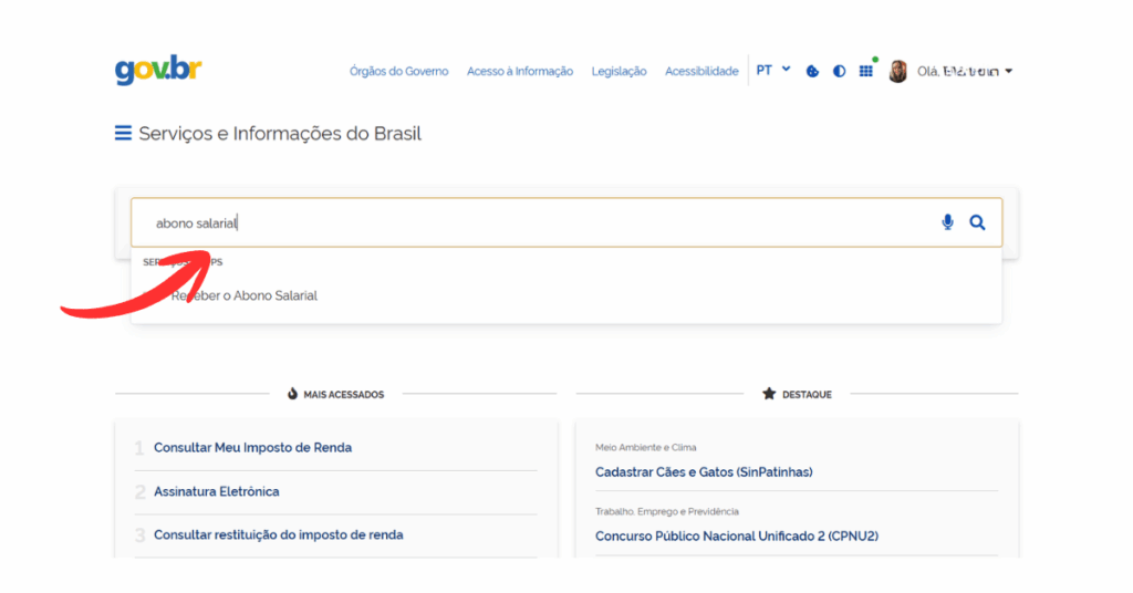 👉 No campo de busca, escreva: “Abono Salarial”.