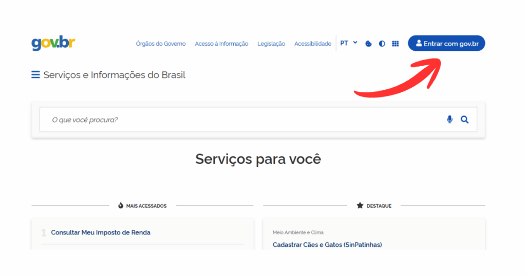 Acesse: www.gov.br. Entre na sua conta gov.br.