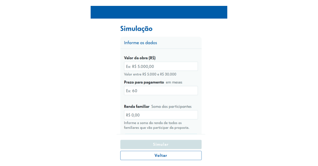 Com o valor da reforma em mente, entre no site oficial da Caixa Econômica Federal onde a simulação é oferecida.