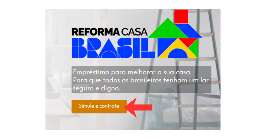 a) No site oficial, um botão em laranjado chamado “Simule e Contrate” irá aparecer na tela na página inicial do Reforma Casa Brasil. Clique sobre ele e a página da simulação irá abrir.